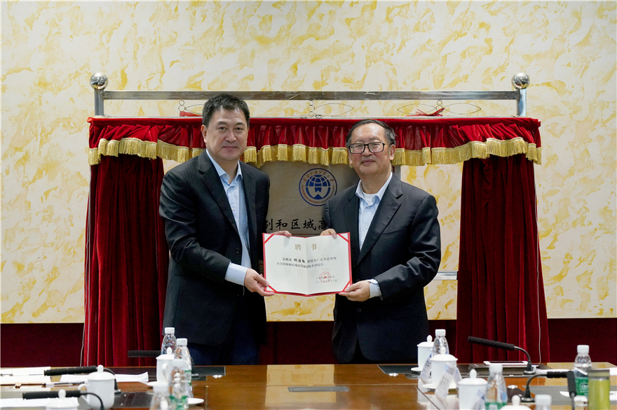 本网讯10月13日,国别和区域高等研究院揭牌仪式暨发展建设研讨会在北校区第一会议室举行。我校党委书记隋广军为上海国际问题研究学术委员会主任杨洁勉颁发国别和区域高等研究院名誉院长聘书及高端智库建设云山工作室首席专家聘书。会议由副校长何传添主持,科研处、人事处、相关研究机构负责人和各依托学院负责人参加会议。