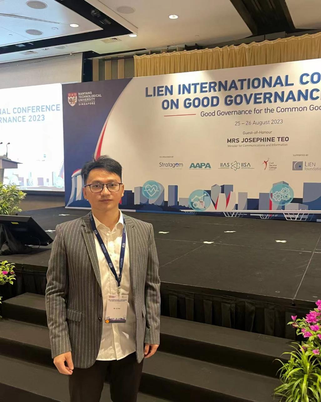 8月25日至26日,由新加坡南洋理工大学南洋公共管理研究生院和连瀛洲纪念奖学金主办的2023连氏善治国际会议在新加坡举行,我院专职研究员、云山青年学者计飞博士获邀参会。