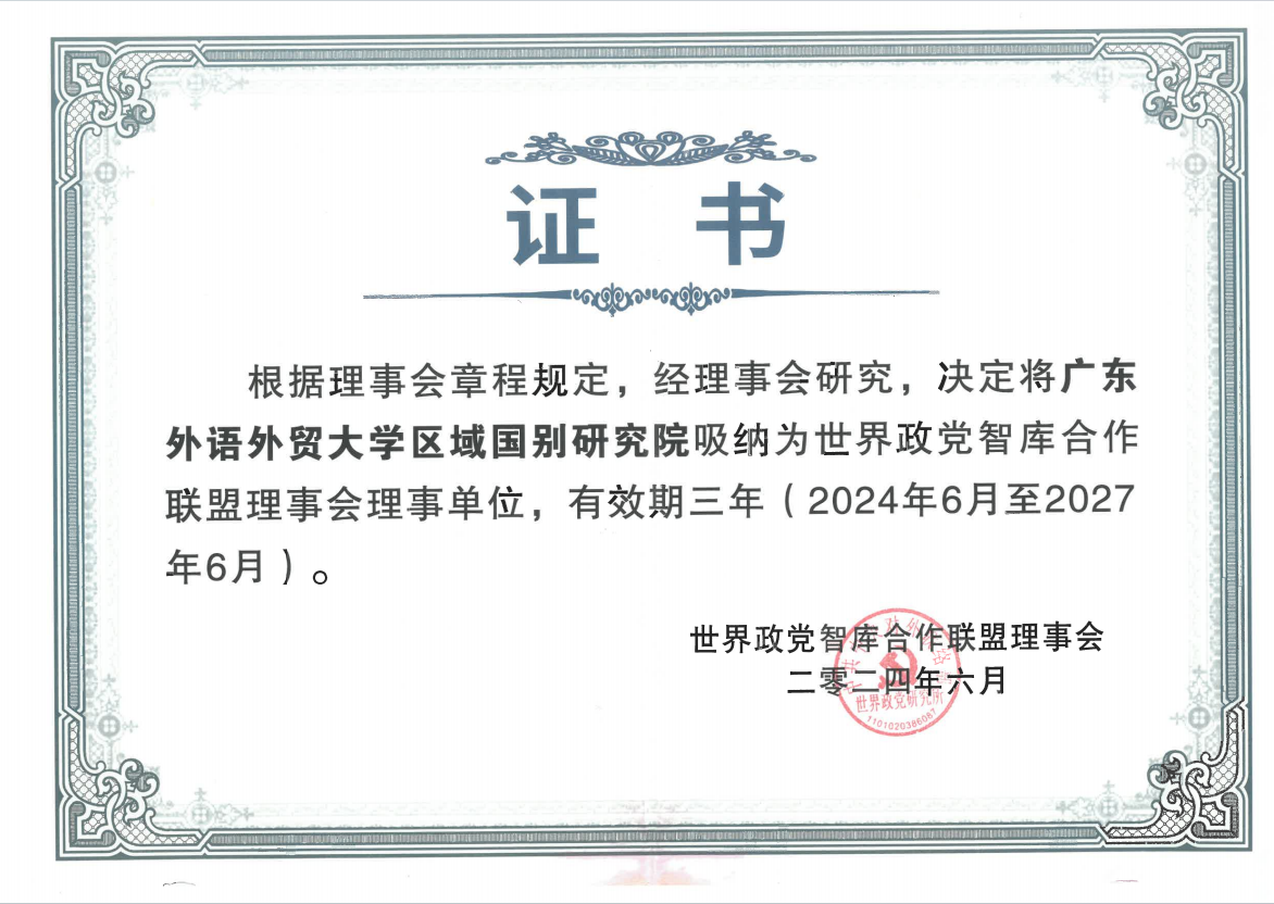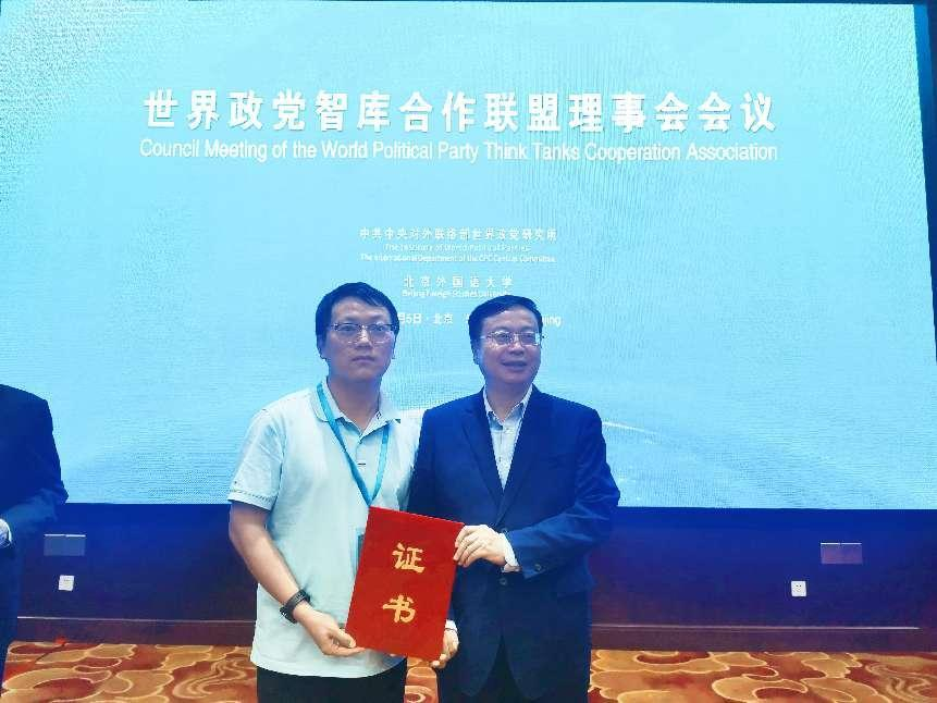 中共中央对外联络部副部长陈洲、复旦大学党委书记裘新、中国人民大学党委书记张东刚等出席会议并致辞。在“世界政党智库合作联盟”成立大会上,广东外语外贸大学区域国别研究院入选首批理事单位,我校区域国别研究院副院长黄忠副研究员受邀参加会议。