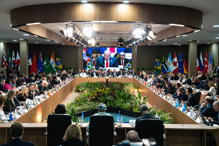 Des délégués participent à la Réunion des ministres des Affaires étrangères du G20 à Rio de Janeiro, au Brésil, le 21 février 2024. (XINHUA)