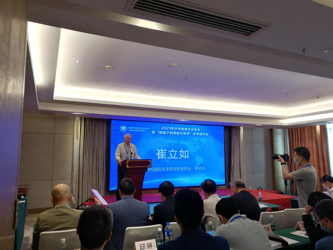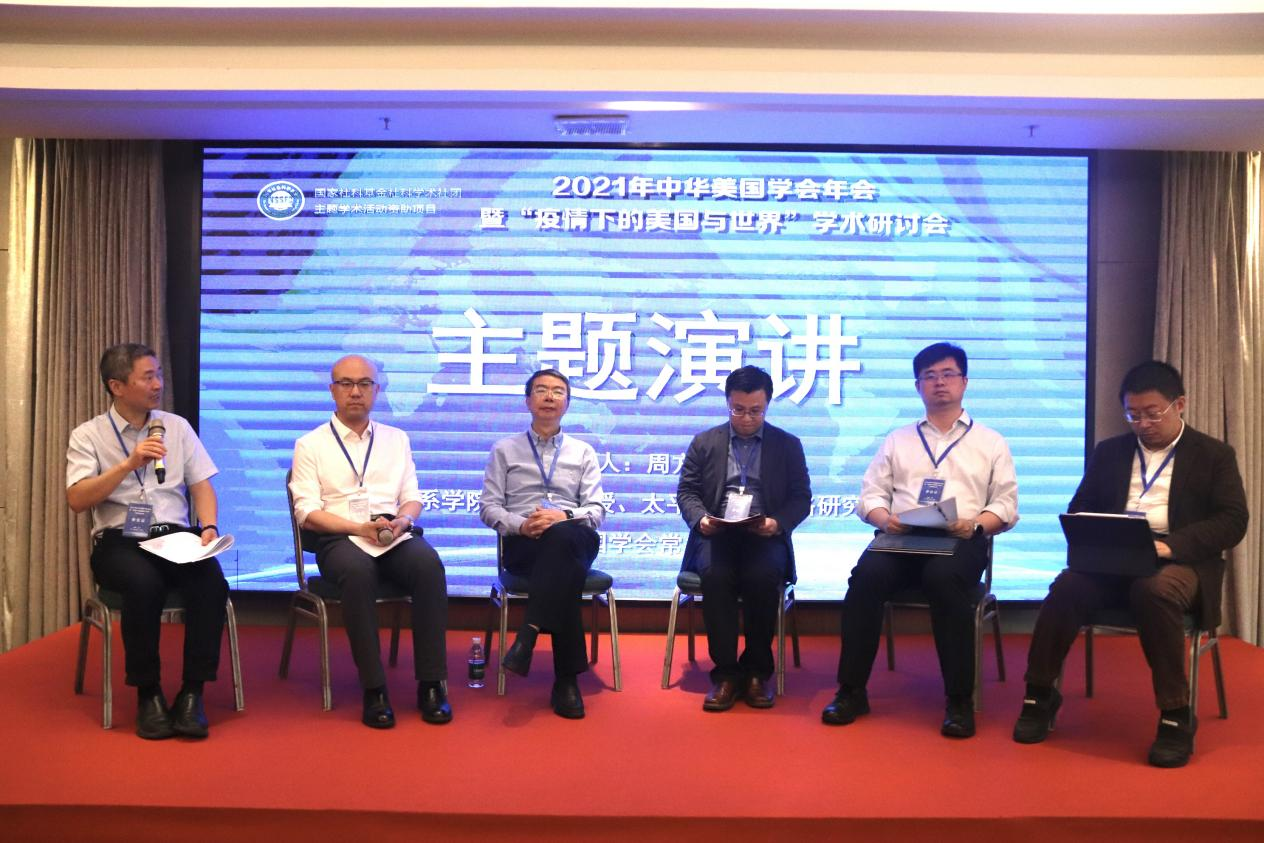 中国现代国际关系研究院前院长崔立如研究员,上海市美国学会会长黄仁伟教授,中华美国学会副会长王帆教授,分别做题为《对拜登政府政策的几点判断》《美国霸权衰落的两重性影响分析》《美国对华政策竞争性共存与新平衡》的主旨发言。崔立如指出中美对战略竞争的不同解读对中美关系发展提出挑战,强调拜登政府对华主调仍是战略竞争,但具体政策与特朗普时期有较大的不同。黄仁伟认为美国对霸权衰落的恐惧导致美国战略的根本性调整,美国霸权衰落带来中美关系的复杂变化。王帆提出中美之间竞争性共存的概念,拜登政府对华政策主要是竞争但并不影响共存,共存是为竞争服务的,由此需要形成新的平衡状态。