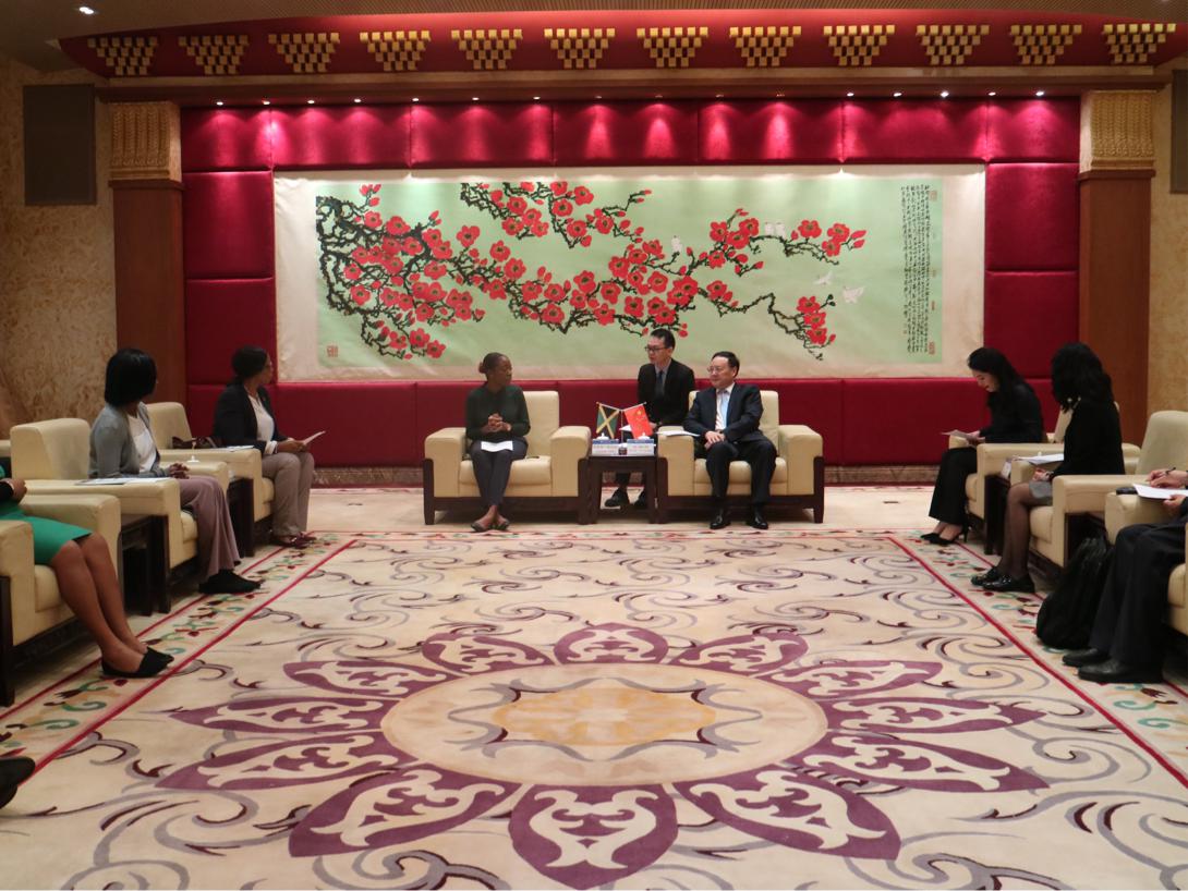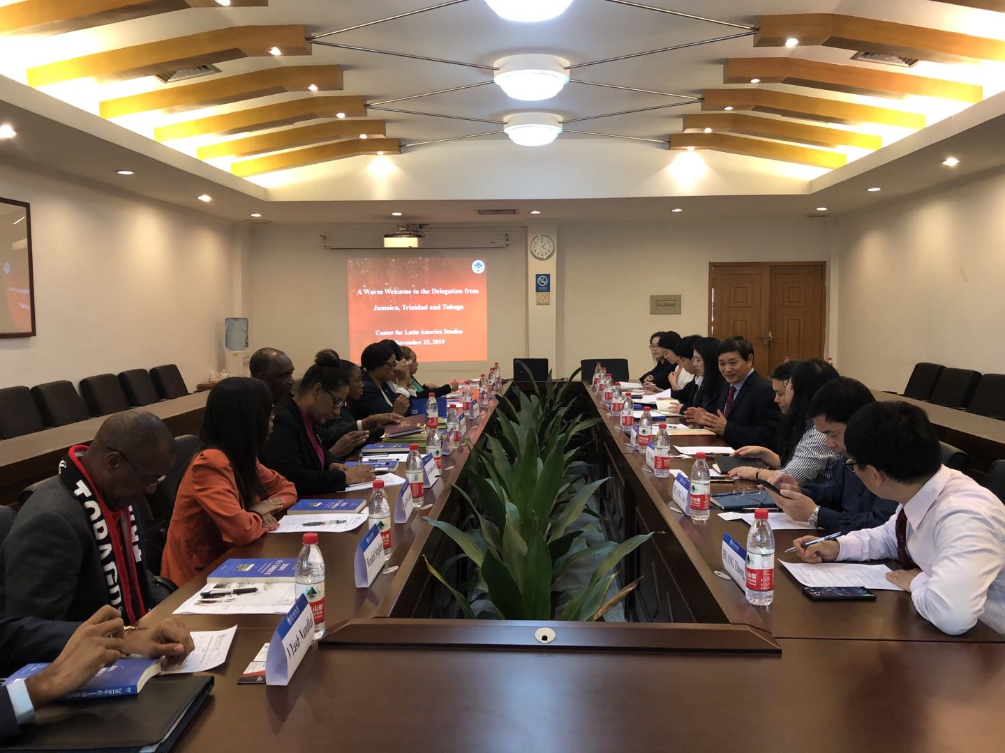石佑启向来宾介绍了我校建校历史及基本情况。他提到,我校与拉丁美洲国家近二十所高校建立了友好合作关系,并十分重视对拉丁美洲的研究。希望今后中国与牙买加及特立尼达和多巴哥在文化交流、人才培养等方面有更多的合作。